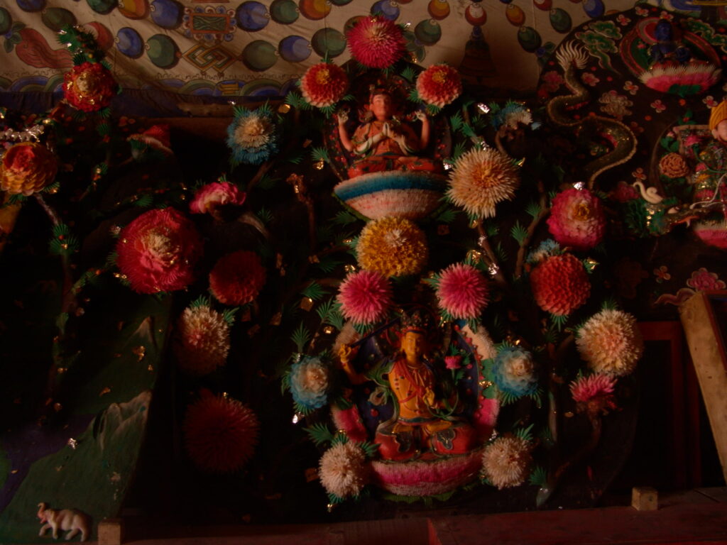 A tour guide at Kumbum Monastery shared with me that Tibetan Buddhist followers believe the creation of butter sculptures is closely tied to Je Tsongkhapa, the founder of the Gelug school of Tibetan Buddhism and teacher to both the Dalai and Panchen Lamas. The flourishing of butter sculptures is said to be inspired by a dream Tsongkhapa once had. Born in the very area where Kumbum Monastery now stands, Tsongkhapa dreamed of thorn bushes transforming into radiant lamps, wild grasses blooming into vibrant flowers, and countless pearls shimmering brilliantly amidst these lamps and flowers. Upon awakening, he organized monks to recreate his dream using butter sculptures, offering them before the Buddha on the night of the 15th day of the lunar month. Prior to the 1950s, these sculptures were traditionally burned before dawn after their display, symbolizing the ephemeral nature of their beauty—like a fleeting blossom.
